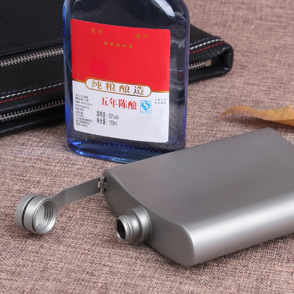 200ML Titanium Flask Liquor Ultra Light Flat Hip Flask Outdoor Camping Picnic Hiking Pot Stoves Tab
